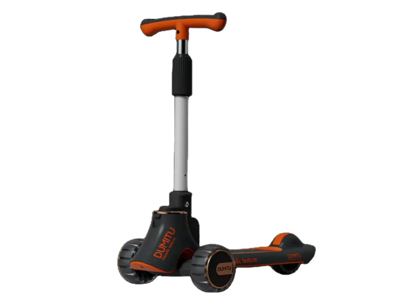 საბავშვო სკუტერი Dumitu Plus 002BLACK არის სტაბილური და მტკიცე ტრანსპორტი, რომელიც შესანიშნავად ერგება ბავშვების ყოველდღიურ აქტივობას. მისი გამძლე კონსტრუქცია, მაღალი ხარისხის მასალები და ანტისრიალების დაფა უზრუნველყოფს უსაფრთხოებასა და კომფორტს გადაადგილებისას. სკუტერს აქვს სილიკონის რბილი ბორბლები და უკანა მუხრუჭი, რაც ზრდის კონტროლის დონეს. რეგულირებადი სახელური ერგება ბავშვის სიმაღლეს, რაც უზრუნველყოფს ხანგრძლივ გამოყენებას. ელეგანტური შავი ფერი გამოირჩევა სიმარტივით და თანამედროვე სტილით, რაც მოსწონთ როგორც გოგონებს, ისე ბიჭებს. იდეალურია გარე გასეირნებისთვის და კოორდინაციის განვითარებისთვის.