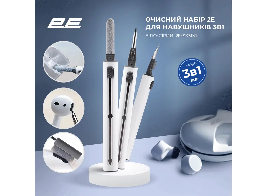 ყურსასმენის საწმენდი E2 CLEANING KIT FOR EARBUDS 3IN1 WHITE/GREY