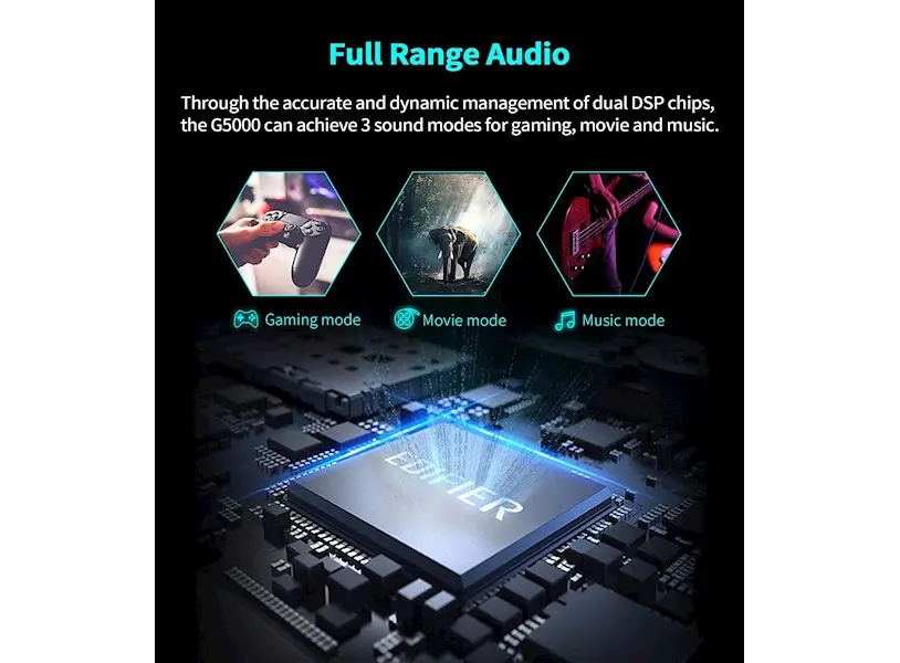 - სამი ხმის რეჟიმი: თამაშებისთვის, ფილმებისთვის და მუსიკისთვის
