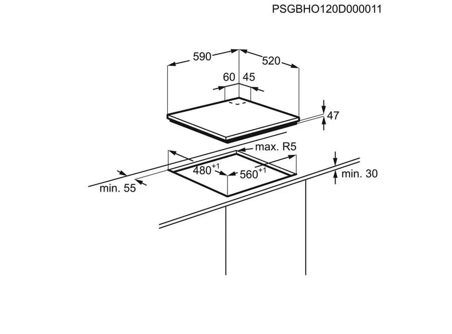 - ჩასაშენებელი ზომები: 56 x 48 cm