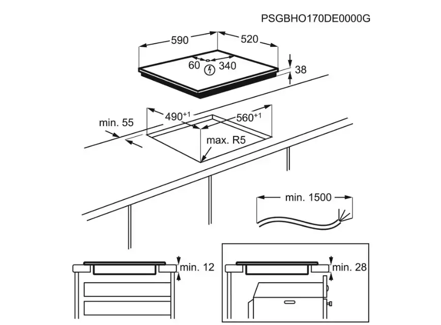 - ჩასაშენებელი ზომები: 56 x 49 cm
