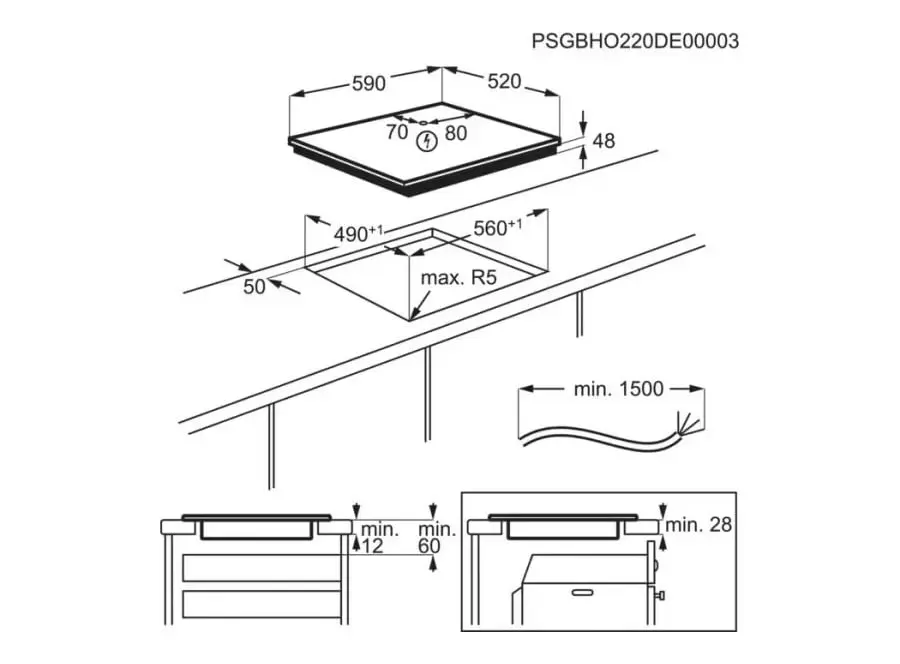 - ჩასაშენებელი ზომები: 4.8 x 59 x 52