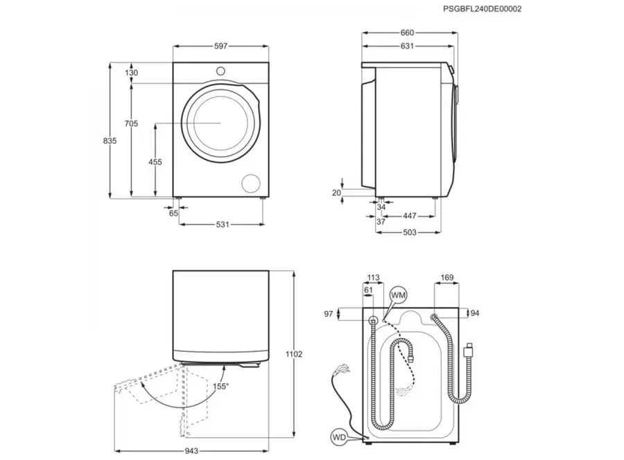 - წყლის მოხმარება ერთი ციკლისას: 51 L