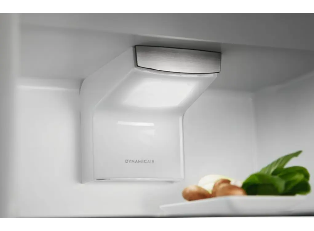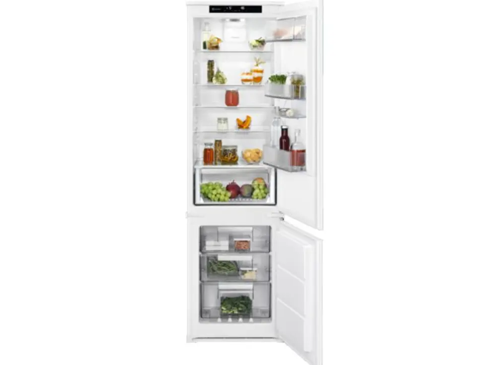 Electrolux RNT6TE19S0 არის ჩასაშენებელი ორკამერიანი მაცივარი, რომელიც გამოირჩევა თანამედროვე ტექნოლოგიებით და ენერგოეფექტურობით. მისი საერთო მოცულობა შეადგენს 276 ლიტრს, საიდანაც 215 ლიტრი განკუთვნილია მაცივრისთვის, ხოლო 61 ლიტრი - საყინულესთვის. TwinTech® No Frost ტექნოლოგია უზრუნველყოფს მაცივრისა და საყინულეს დამოუკიდებელ გაგრილებას, რაც ხელს უწყობს პროდუქტის ტენიანობის შენარჩუნებას და გამორიცხავს ყინულის წარმოქმნას. DynamicAir სისტემა ინარჩუნებს სტაბილურ ტემპერატურას მაცივრის შიგნით, რაც იცავს პროდუქტებს ტემპერატურის მერყეობისგან. MultiSpace დიზაინი მაცივარს უფრო მაღალს ხდის, რაც დამატებით სათავსო სივრცეს ქმნის. ენერგოეფექტურობის კლასია A++, ხოლო ხმაურის დონე მხოლოდ 35 დბ-ია, რაც უზრუნველყოფს მყუდრო გარემოს. დამატებითი ფუნქციები მოიცავს სწრაფი გაგრილების და გაყინვის რეჟიმებს, დასვენების ფუნქციას და სენსორულ მართვას ზედა პანელზე.