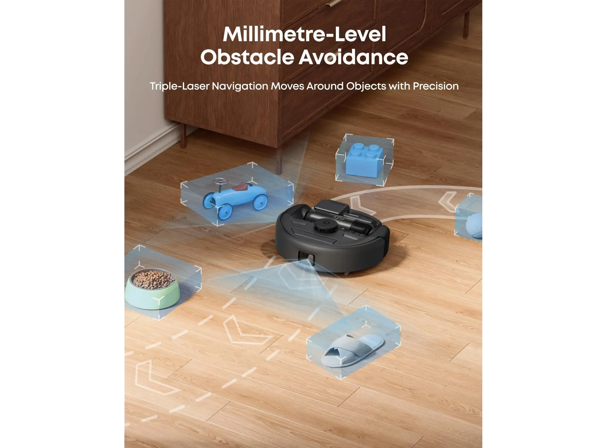 - Auto-Lift (აწევის ფუნქცია): ხალიჩის დანახვისას რობოტი ავტომატურად წევს ტილოებს 12 მმ-ით ზევით, რათა ხალიჩა არ დასველდეს.
