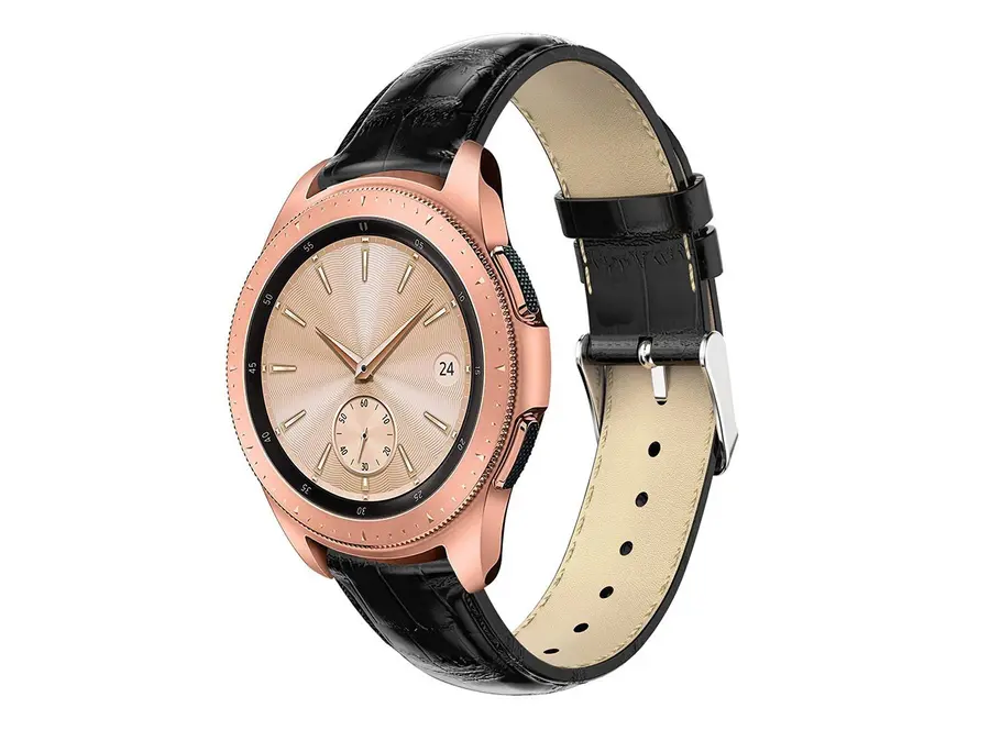 სმარტ საათის სამაჯური For Samsung Galaxy Watch 42mm, Smart Watch Strap Bracelet 20mm Crocodile Texture Genuine Leather - Black