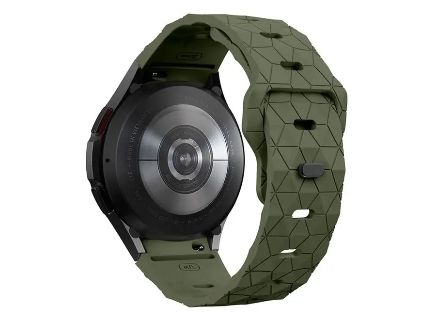 Samsung Galaxy Watch FE 40mm, Watch 4, 5 და 6-ისთვის განკუთვნილი KALEBOL Football Pattern სილიკონის სამაჯური წარმოადგენს თანამედროვე და ფუნქციურ აქსესუარს. მწვანე ფერის დიზაინი და უნიკალური ფეხბურთის სტილის ნიმუში ქმნის სპორტულ და დინამიურ იერს. სილიკონის მასალა უზრუნველყოფს კომფორტულ ტარებას, გამძლეობასა და ყოველდღიური ცვეთისგან დაცვას. სამაჯური წყალგამძლეა, რაც იდეალურია სპორტული აქტივობებისა და გარე პირობებისთვის. მარტივი სამაგრი მექანიზმი საშუალებას გაძლევთ სწრაფად და მარტივად შეცვალოთ სამაჯური. KALEBOL-ის ეს სტრაპი შესანიშნავია მათთვის, ვინც ეძებს ხარისხიან და პრაქტიკულ სამაჯურს.