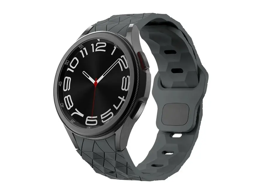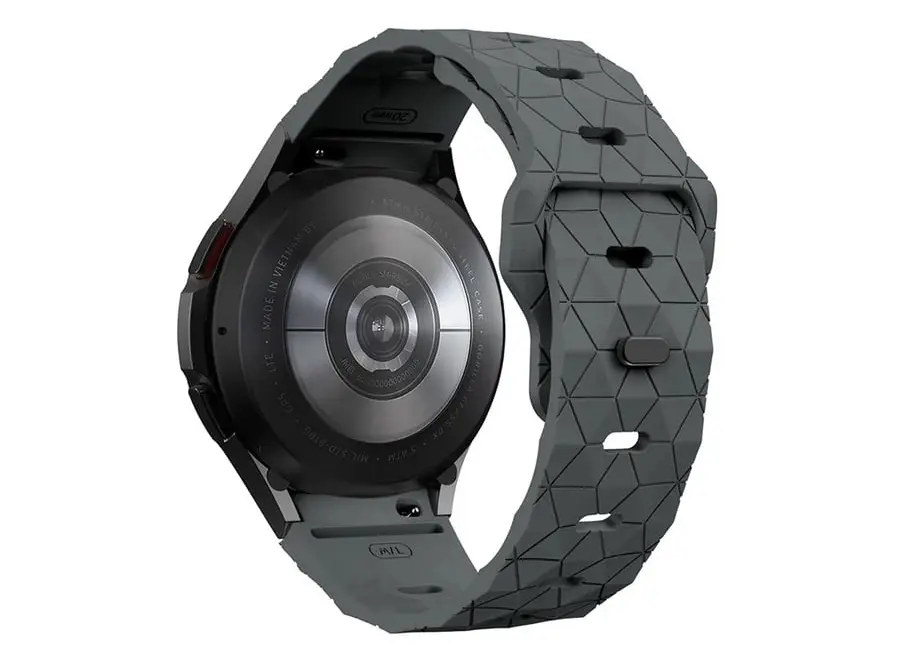 Samsung Galaxy Watch FE 40mm, Watch 4, 5 და 6-ისთვის განკუთვნილი KALEBOL Football Pattern სილიკონის სამაჯური წარმოადგენს თანამედროვე და ფუნქციურ აქსესუარს. ნაცრისფერი ფერის დიზაინი და უნიკალური ფეხბურთის სტილის ნიმუში ქმნის სპორტულ და დინამიურ იერს. სილიკონის მასალა უზრუნველყოფს კომფორტულ ტარებას, გამძლეობასა და ყოველდღიური ცვეთისგან დაცვას. სამაჯური წყალგამძლეა, რაც იდეალურია სპორტული აქტივობებისა და გარე პირობებისთვის. მარტივი სამაგრი მექანიზმი საშუალებას გაძლევთ სწრაფად და მარტივად შეცვალოთ სამაჯური. KALEBOL-ის ეს სტრაპი შესანიშნავია მათთვის, ვინც ეძებს ხარისხიან და პრაქტიკულ სამაჯურს.