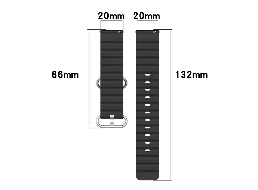 Samsung Galaxy Watch3 41mm და Gear Sport-ისთვის განკუთვნილი 20mm სილიკონის სამაჯური გამორჩეულია უნიკალური Wave Design-ით და დახვეწილი შავი ფერის მყარი სტილით. მაღალი ხარისხის სილიკონის მასალა უზრუნველყოფს კომფორტულ ტარებას, მოქნილობასა და ხანგრძლივ გამძლეობას. წყალგამძლე მდგრადი დიზაინი იდეალურია როგორც ყოველდღიური გამოყენებისთვის, ისე სპორტული აქტივობებისთვის. სამაჯურის მარტივი რეგულირებადი სისტემა საშუალებას გაძლევთ მოარგოთ იგი სხვადასხვა მაჯის ზომას სწრაფად და მარტივად. Wave Design-ის ტექსტურა მას ანიჭებს დახვეწილ და თანამედროვე იერს, რაც იდეალურად ეხამება თქვენს Samsung Galaxy Watch-ს.