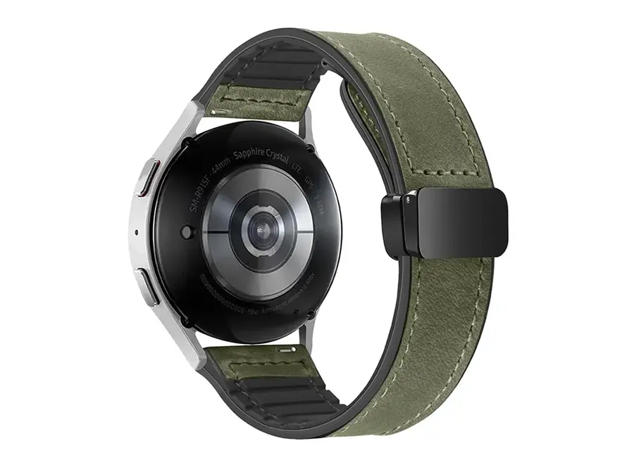 Samsung Gear Sport და Huawei Watch GT 3 42mm-ისთვის შექმნილი 20mm ნატურალური ძროხის ტყავის სამაჯური გამორჩეულია თავისი დახვეწილი დიზაინით და მაღალი ხარისხით. არმიის მწვანე ფერი იდეალურ ბალანსს ქმნის კლასიკურ და თანამედროვე იერსახეს შორის. მაგნიტური საკეტი უზრუნველყოფს სამაჯურის მარტივ და უსაფრთხო დაფიქსირებას, რაც ტარებას კომფორტულს და პრაქტიკულს ხდის. ტყავის ზედაპირი გამძლეა და დროთა განმავლობაში ინარჩუნებს თავის ორიგინალ სტრუქტურასა და ელეგანტურ იერს. ეს სამაჯური შესანიშნავად ერგება როგორც სპორტულ, ისე საქმიან სტილს, რაც თქვენს სმარტ საათს უნიკალურ და დახვეწილ ვიზუალს სძენს.