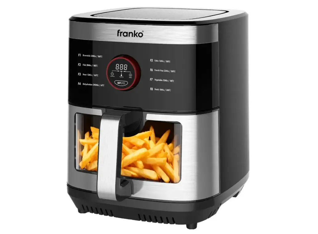 ფრანკოს აეროგრილი გთავაზობთ კერძების მომზადების თანამედროვე და ჯანსაღ მეთოდს თქვენს სამზარეულოში. მოწყობილობა მუშაობს ცხელი ჰაერის ცირკულაციის პრინციპით, რაც საშუალებას გაძლევთ მიიღოთ ხრაშუნა და გემრიელი შედეგი ცხიმის მინიმალური გამოყენებით. მისი ტევადი კალათა იდეალურია დიდი პორციების მოსამზადებლად, რაც მას საუკეთესო არჩევნად აქცევს მრავალსულიანი ოჯახებისთვის. ინტუიციური მართვის პანელი და წინასწარ დაყენებული პროგრამები მაქსიმალურად ამარტივებს სხვადასხვა პროდუქტის, მათ შორის ხორცის, ბოსტნეულისა და ცომეულის მომზადებას. აეროგრილი გამოირჩევა სწრაფი გახურების ფუნქციით, რაც მნიშვნელოვნად ზოგავს თქვენს დროს. მაღალი ხარისხის მიმწვრობის საწინააღმდეგო ზედაპირი უზრუნველყოფს საკვების იდეალურად მომზადებას და აადვილებს რეცხვის პროცესს. დახვეწილი დიზაინი და კომპაქტური ფორმები ნებისმიერ ინტერიერს სიმსუბუქესა და სტილს სძენს. შექმენით ჯანსაღი კულინარიული შედევრები ყოველდღიურად ფრანკოს საიმედო ტექნიკის დახმარებით.