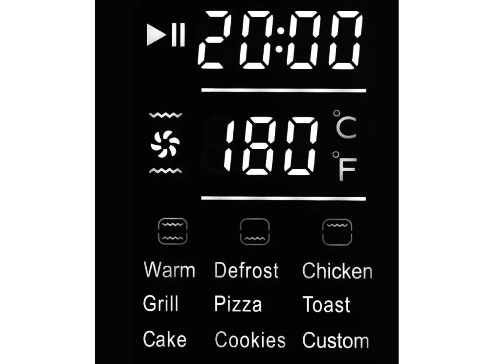 - აჩვენებს პროგრამას, ფუნქციას, სამზარეულოს დროს და ტემპერატურას