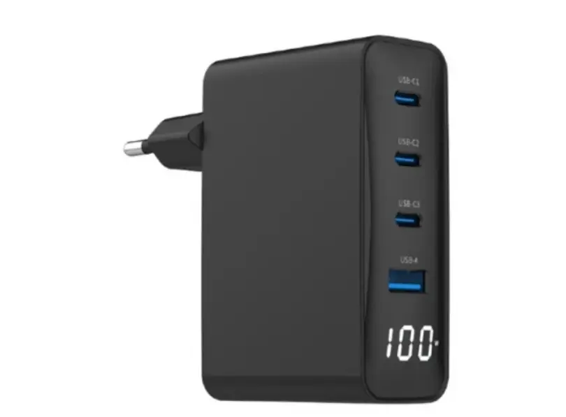 დამტენი Gembird TA-UC-PDQC100LCD-01-BK 4-port 100W GaN USB fast charger LCD Black