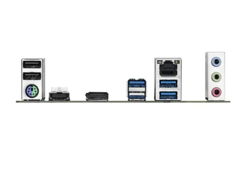 - უკანა I/O პორტები: 1 x DisplayPort, 3 x USB 2.0/1.1 ports, 1 x LAN (RJ-45), 1 x HDMI, 3 x USB 3.2 Gen 1 ports, 1 x PS/2 keyboard/mouse port, 3 x audio jacks