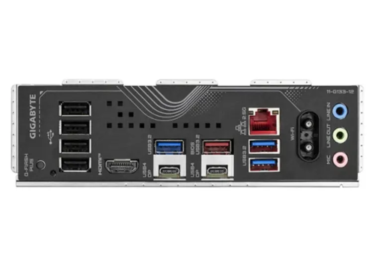 - უკანა I/O პორტები: 2 x USB4® USB Type-C® ports (DisplayPort) (Actual support may vary by CPU), 1 x USB 3.2 Gen 2 Type-A port (red), 1 x Q-Flash Plus button, 1 x LAN (RJ-45), 3 x USB 3.2 Gen 1 ports, 1 x HDMI, 4 x USB 2.0/1.1 ports, 3 x audio jacks