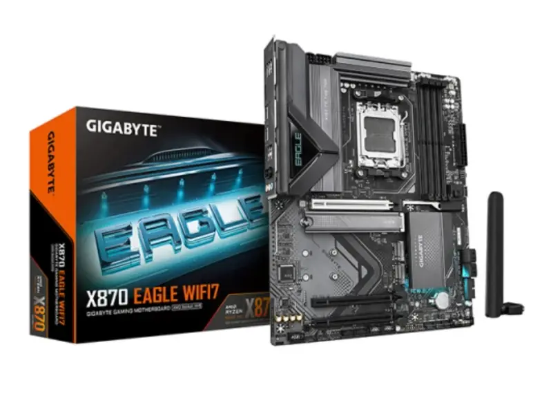 დედა დაფა Gigabyte X870 EAGLE WIFI7 1.1 არის თანამედროვე და გამძლე პლატფორმა AMD Ryzen პროცესორებისთვის AM5 სოკეტით. იგი გთავაზობთ მაღალ წარმადობას, სტაბილურობას და ფართო ფუნქციონალს, რაც საშუალებას აძლევს როგორც გეიმერებს, ასევე პროფესიონალ მომხმარებლებს შექმნან ძლიერი სისტემა. 4 DDR5 სლოტი უზრუნველყოფს ოპერატიული მეხსიერების უმაღლეს სიჩქარეს და ეფექტურობას, PCIe 5.0 მხარდაჭერა კი აძლევს მომავლისთვის მზა ინფრასტრუქტურას ვიდეო დაფებისა და მაღალი წარმადობის SSD-ებისთვის. ინტეგრირებული WiFi 7 და 2.5GbE LAN სთავაზობს სწრაფ და სტაბილურ კავშირს, ხოლო გაუმჯობესებული ენერგომომარაგების სისტემა ინარჩუნებს სტაბილურობას ხანგრძლივი დატვირთვისას. EAGLE სერიის დახვეწილი დიზაინი და გამაგრებული კომპონენტები უზრუნველყოფს გამძლეობას და უსაფრთხოებას. ეს დედა დაფა იდეალურია მათთვის, ვინც სურს მოაწყოს თანამედროვე, ენერგოეფექტური და სანდო სისტემა უახლესი ტექნოლოგიებით.