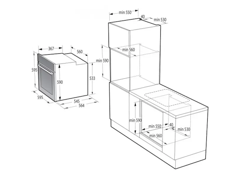 - პროდუქტის ტიპი: ჩასაშენებელი ელექტრო ღუმელი