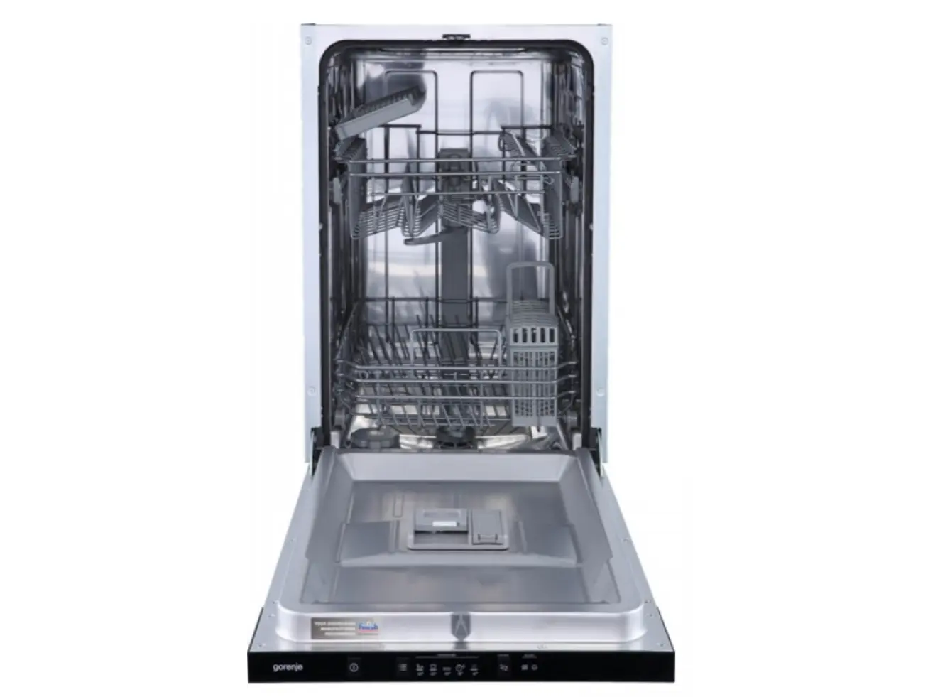 GORENJE GV520E15 არის ჩაშენებული ჭურჭლის სარეცხი მანქანა, სიმძლავრით 45 სმ და 9 კომპლექტიანი ტევადობით. ენერგოეფექტური E კლასი (≈70 kWh/100 ციკლი), წყლის მოხმარება მხოლოდ 9 ლ ციკლზე. აღჭურვილია Total AquaStop უსაფრთხოების სისტემით და თვითწმენდის ფილტრით. მოწყობილობა მოიცავს 5 პროგრამას: Eco, ინტენსიური, სწრაფი 1‑საათიანი, daily და წინასწარი (.soak), ასევე 3‑in‑1 დოზირების ფუნქციას. დისტანციური მართვა არა აქიზისი, მართვა ღილაკებით და LED ინდიკატორებით. სამუშაო ხმაურის დონე ≈47 dB (კლასი C), მართვის პანელში ჩაშენებული დისპლეით და რეგულირებად ზედა კალათით გამომწყვდეულია, რაც ზრდის მოხერხებულობას.