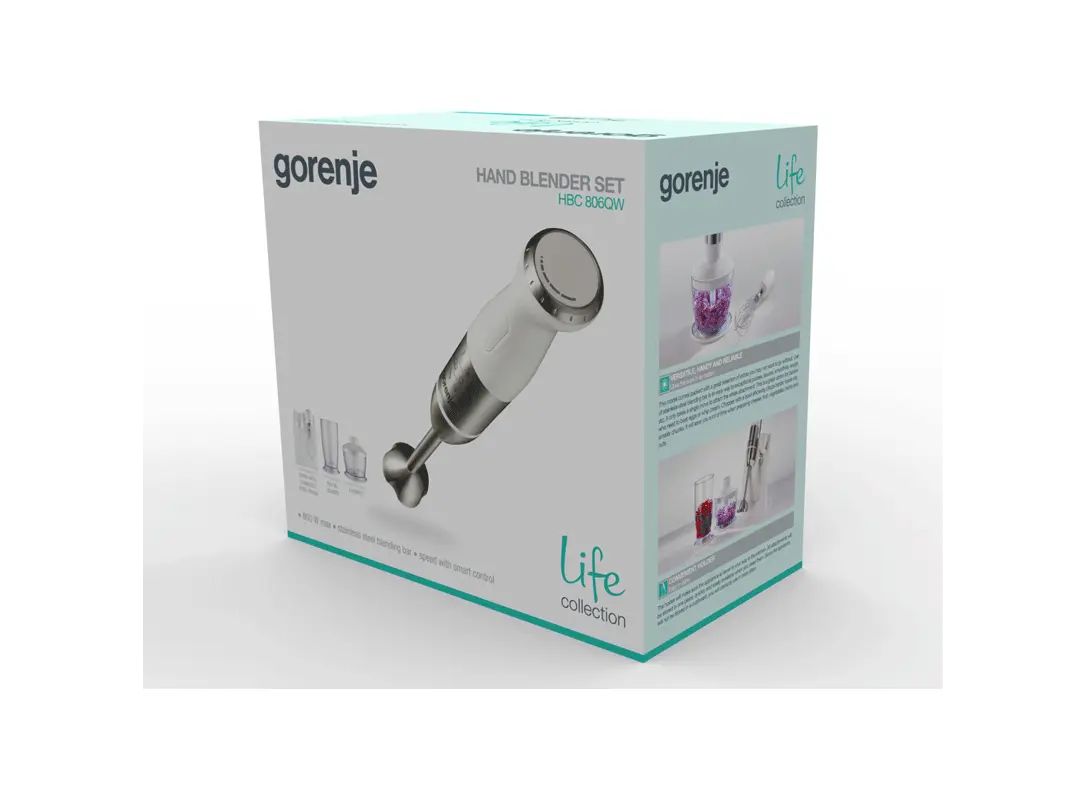 GORENJE HBC806QW არის მძლავრი და მრავალფუნქციური ხელის ბლენდერი, რომელიც განკუთვნილია სხვადასხვა საკვების სწრაფი და ეფექტური დამუშავებისთვის. მისი 800 ვატიანი DC ტიპის ძრავა უზრუნველყოფს ენერგოეფექტურობასა და ხანგრძლივ მუშაობას. ბლენდერი აღჭურვილია ოთხმაგი უჟანგავი ფოლადის დანებით, რაც უზრუნველყოფს ინგრედიენტების თანაბარ და სწრაფ შერევას, დაქუცმაცებასა და პიურეს მომზადებას. კომპლექტში შედის 0.5 ლიტრიანი სარევი ჭიქა, 0.5 ლიტრიანი საჭრელი ჭიქა და 0.8 ლიტრიანი საზომი ჭიქა, რაც ზრდის მისი გამოყენების მრავალფეროვნებას. მოწყობილობას აქვს უწყვეტი სიჩქარის რეგულირების ფუნქცია, რაც საშუალებას გაძლევთ აკონტროლოთ შერევის პროცესი და მიაღწიოთ სასურველ კონსისტენციას. ბლენდერის ნაწილები ადვილად იხსნება და იწმინდება, რაც უზრუნველყოფს მოხმარების კომფორტს. ელეგანტური დიზაინი და კომპაქტური ზომები იდეალურად შეესაბამება ნებისმიერ სამზარეულოს ინტერიერს.