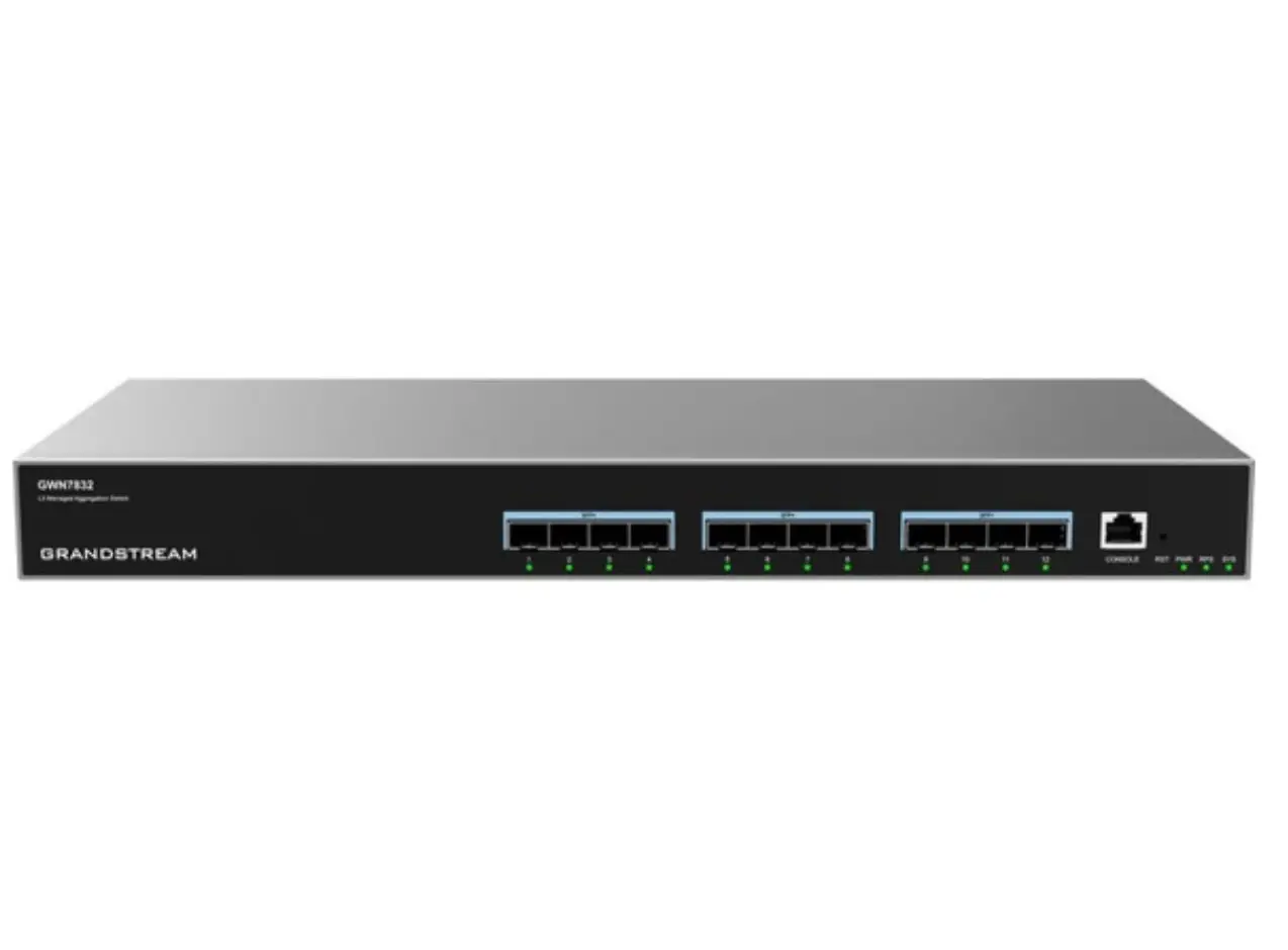 Grandstream GWN7832 არის უმაღლესი კლასის მესამე დონის L3 მართვადი ქსელური კომუტატორი, რომელიც შექმნილია მაღალი გამტარუნარიანობის მქონე კორპორატიული ქსელებისთვის. მოწყობილობა აღჭურვილია 12 მაღალსიჩქარიანი SFP Plus პორტით, რაც უზრუნველყოფს მონაცემთა გადაცემის განსაკუთრებულ სისწრაფესა და სტაბილურობას ოპტიკურ ქსელებში. კომუტატორი მხარს უჭერს მოწინავე მარშრუტიზაციის ფუნქციებს, უსაფრთხოების მკაცრ პროტოკოლებსა და ტრაფიკის ეფექტურ მართვას. დამატებითი სათადარიგო კვების ბლოკის (PSU) მხარდაჭერა გარანტიას იძლევა სისტემის უწყვეტი მუშაობისთვის კრიტიკულ სიტუაციებშიც კი. GWN7832 გამოირჩევა მარტივი ადმინისტრირებითა და მასშტაბირების მოქნილობით, რაც მას იდეალურ გადაწყვეტილებად აქცევს საშუალო და დიდი ზომის ბიზნესებისთვის, სადაც პრიორიტეტული ქსელური ინფრასტრუქტურის საიმედოობა და მაღალი წარმადობაა.
