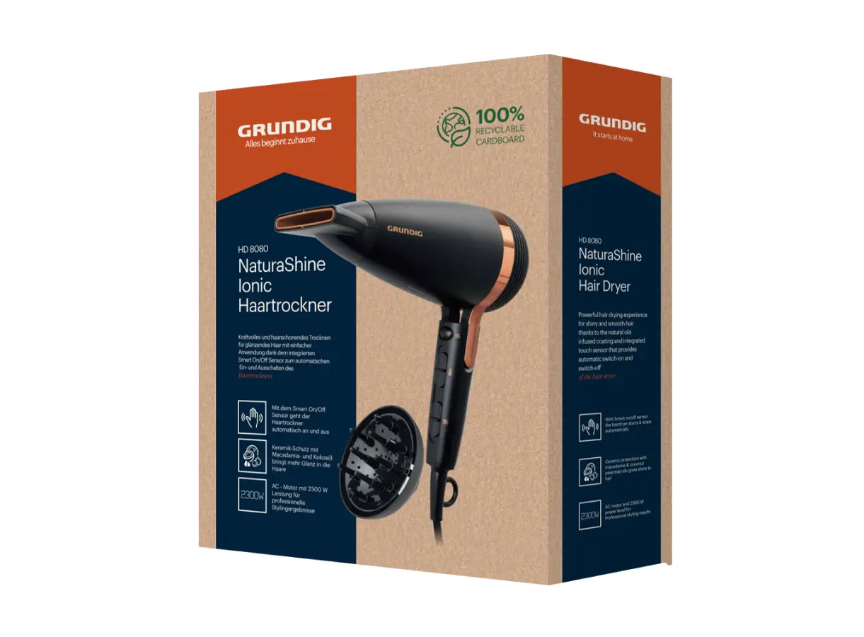 ერგონომიული დიზაინი და მსუბუქი წონა ხელს უწყობს მარტივ და კომფორტულ გამოყენებას. Grundig HD 8080 არის გამძლე, ძლიერი და თანამედროვე თმის საშრობი, რომელიც იდეალური პარტნიორია ყოველდღიური სტილის შესაქმნელად.