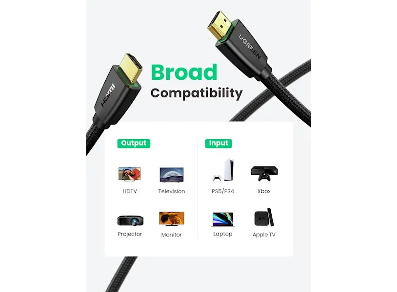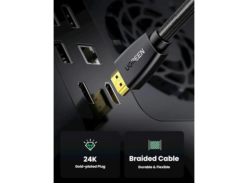 HDMI კაბელი UGREEN HD118 (40411) High-End HDMI Cable with Nylon Braid 3m (Black)
