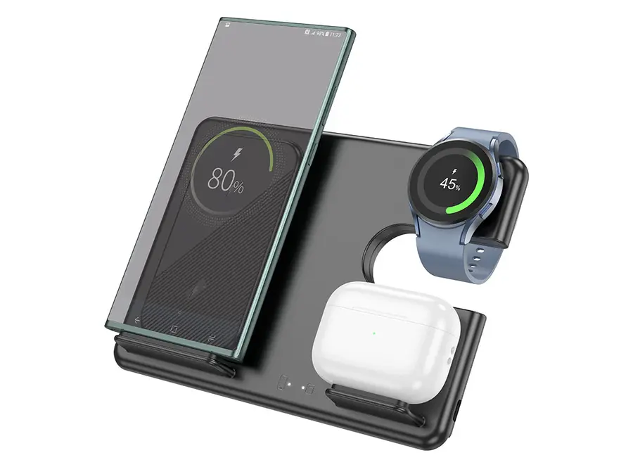 პორტატული დამტენი Hoco CQ2 Flash folding 3-in-1 wireless fast charger(SAM Watch) black
