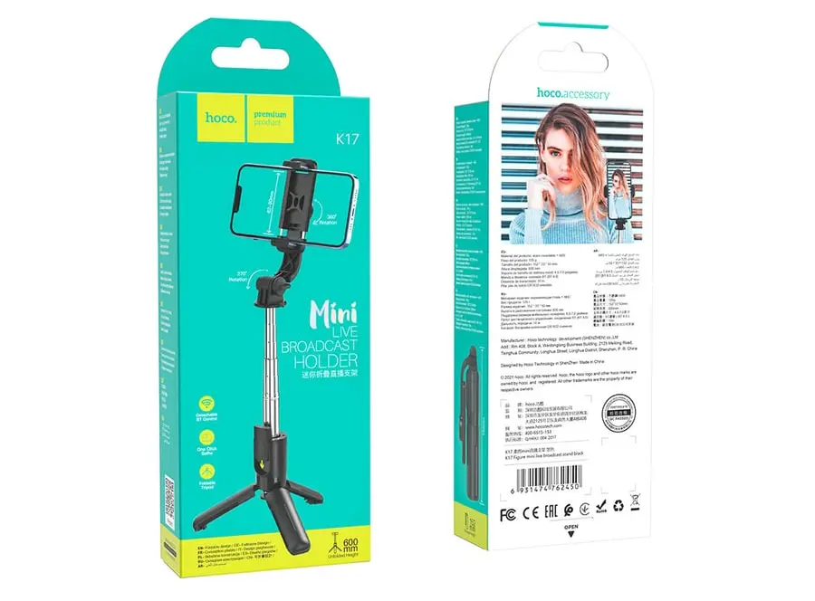 მობილურის სამაგრი Hoco K17 Mini Live wireless selfie stick with Tripod - Black