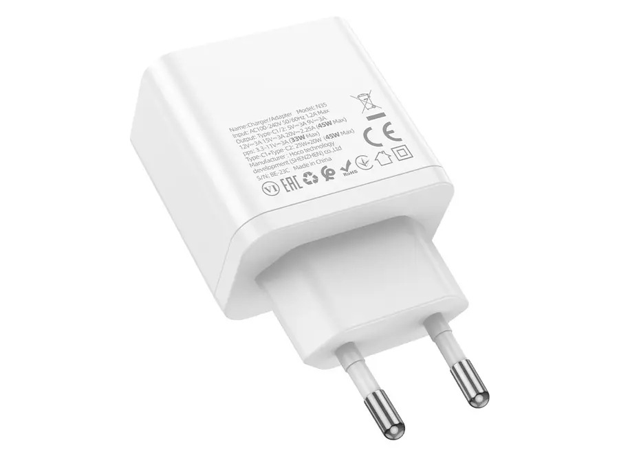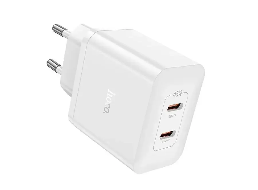 ადაპტერი Hoco N35 Streamer dual-port PD45W (2C) charger white