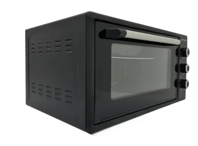 ელექტრო ღუმელი Hoffmann FGT4800 TURBOGRILL BLACK აერთიანებს მძლავრ ფუნქციონალსა და ელეგანტურ დიზაინს. მისი 1600 ვატიანი სიმძლავრე და 48 ლიტრიანი მოცულობა უზრუნველყოფს სხვადასხვა კერძის სწრაფ და თანაბარ მომზადებას. მექანიკური მართვის პანელი, ტაიმერი და თერმოსტატი საშუალებას გაძლევთ მარტივად აკონტროლოთ მომზადების პროცესი. შავი ფერის კორპუსი და მინის კარი ქმნის თანამედროვე ვიზუალს, რომელიც იდეალურად ერგება ნებისმიერ სამზარეულოს. კომპლექტში შედის ორი საცხობი ფორმა, რაც ზრდის მოხმარების კომფორტს. Hoffmann FGT4800 TURBOGRILL BLACK არის სანდო და პრაქტიკული არჩევანი ყოველდღიური გამოყენებისთვის.