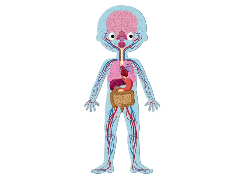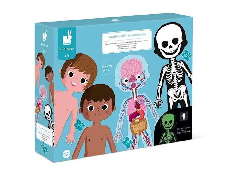 4 გიგანტური თავსატეხი თემაზე - ადამიანის სხეული: 1 თავსატეხი ორმხრივი თავსატეხი ბიჭი / გოგო (50 ელ.); 1 ორგანოს სასწავლო თავსატეხი (75 ელ.). 1 ჩონჩხის თავსატეხი (100 ელ.). თავსატეხებს აწყობილი ფორმა აქვს 1 მეტრის სიმაღლე და ეხმარება ბავშვებს უკეთ გაიგონ ადამიანის სხეული. თავსატეხი მოიცავს დეტალურ საგანმანათლებლო რუქებს, რათა გაეცნოთ ადამიანის სხეულის სხვადასხვა ნაწილს. რეკომენდებული ასაკი: 5 + ზომა: 45 x 100 სმ.