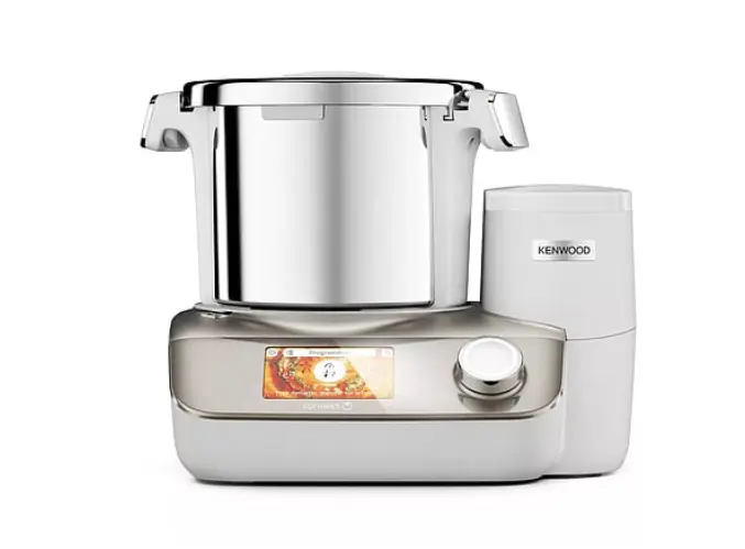 Kenwood CCL50.A0CP CookEasy+ წარმოადგენს მრავალფუნქციურ სამზარეულოს კომბაინს, რომელიც აერთიანებს მიქსერის, ბლენდერის, ორთქლის ქვაბისა და მულტისაზარეულოს ფუნქციებს. მისი 4.5 ლიტრიანი უჟანგავი ფოლადის ჯამი და 1500 ვატიანი გათბობის სისტემა უზრუნველყოფს სხვადასხვა კერძის მომზადებას 30°C-დან 180°C-მდე ტემპერატურაზე. მოწყობილობა აღჭურვილია 4.3-დუიმიანი ფერადი სენსორული ეკრანით, რომელიც გთავაზობთ 8 წინასწარ დაყენებულ პროგრამას, მათ შორის სუპის, ორთქლზე მომზადების, ცომის მოზელვისა და ნელი მომზადების რეჟიმებს. ჩაშენებული სასწორი საშუალებას გაძლევთ ზუსტად გაზომოთ ინგრედიენტები, ხოლო Direct Prep ფუნქცია საშუალებას იძლევა ინგრედიენტების პირდაპირ ჯამში დაჭრა და გახეხვა. კომპლექტში შედის სხვადასხვა დანამატები, მათ შორის ცომის კაუჭი, სარევი, ორთქლის კალათა და 5 დისკი დაჭრისა და გახეხვისთვის. მისი კომპაქტური დიზაინი და მრავალფუნქციურობა იდეალურია თანამედროვე სამზარეულოსთვის.