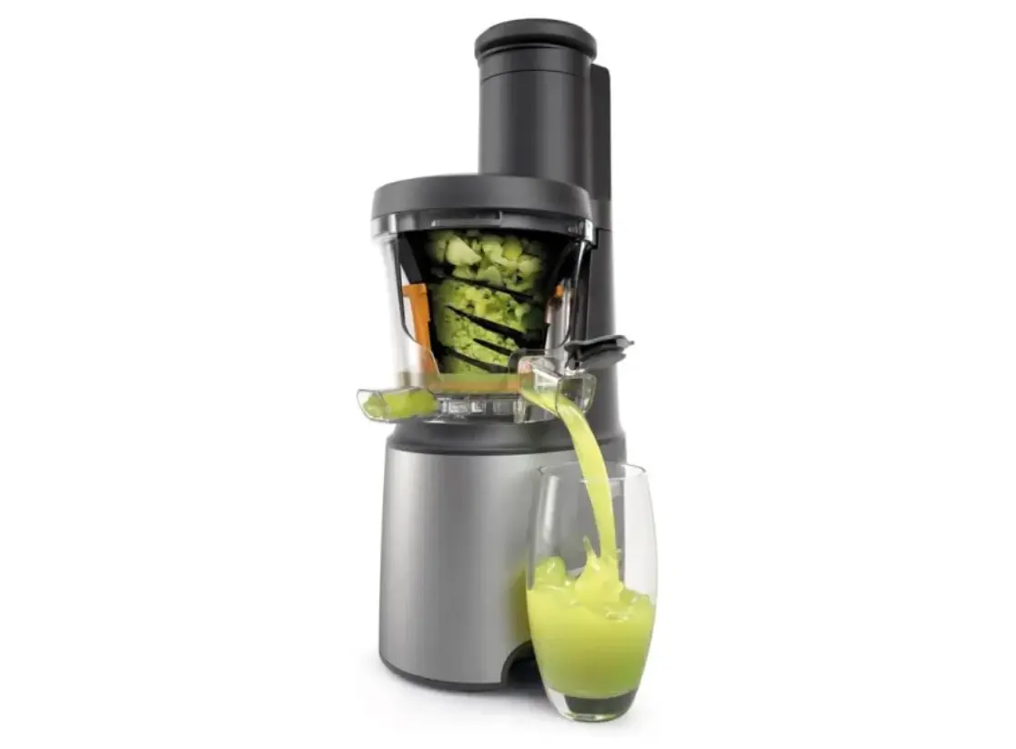 წვენსაწური Kenwood JMP85.000S არის მაღალტექნოლოგიური მოწყობილობა, რომელიც გაძლევთ საშუალებას მოამზადოთ ჯანსაღი და არომატული წვენები მაქსიმალური კომფორტით. მისი ნელი წნეხვის ტექნოლოგია ინარჩუნებს ხილისა და ბოსტნეულის ყველა სასარგებლო ნივთიერებას, ვიტამინსა და მინერალს, რაც სასმელს უფრო ნატურალურსა და მდიდარს ხდის. ფართო შემტანი ღარი ამცირებს ინგრედიენტების წინასწარ დაჭრის საჭიროებას, ხოლო ძლიერი და გამძლე ძრავა უზრუნველყოფს სტაბილურ მუშაობას. აპარატს აქვს წვენისა და ბოჭკოს განცალკევების სისტემა, რაც გაძლევთ სუფთა და გემრიელი სასმლის მიღების საშუალებას ყოველ ჯერზე. მარტივი დაშლისა და რეცხვის შესაძლებლობა ყოველდღიურ გამოყენებას მოსახერხებელს ხდის. ელეგანტური ვერცხლისფერი დიზაინი იდეალურად ერწყმის ნებისმიერ სამზარეულოს ინტერიერს. Kenwood JMP85.000S არის სანდო და პრაქტიკული არჩევანი მათთვის, ვინც აფასებს ჯანმრთელობას, ხარისხსა და კომფორტს.