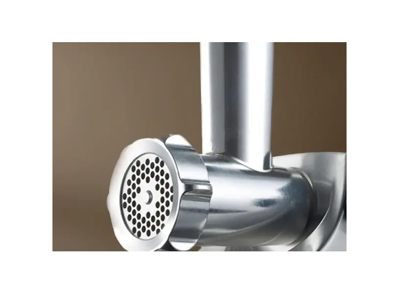 Kenwood MG516 ხორცსაკეპი არის უნივერსალური და კომპაქტური სამზარეულო მოწყობილობა, რომელიც შექმნილია მცირე და საშუალო სახლებისთვის. 1600 ვატიანი სიმძლავრით, იგი მარტივად მუშაობს ნედლი და ნახევრად გაყინული ხორცით. მოწყობილობა აღჭურვილია სამწუხაროდ სამი სხვადასხვა დანამატით: ნაყინი, თხელი და გრძელი საფქვავებით – რაც განკუთვნილია სხვადასხვა ტიპის გრილსთვის და საკვების მომზადებისთვის. აქვს უსაფრთხოების ჩაკეტვის სისტემა, რაც უზრუნველყოფს სტაბილურობას და უსაფრთხო მუშაობას. მარტივად შეგროვებადი ნაწილები იწმინდება ჭუჭყისა და ზეთის გარეშე, რაც აადვილებს მოვლას და ჰიგიენას. სტრუქტურული მეტალის კორპუსი და არასკლიზო ფეხზე სისტემა მატებს სიმყარეს სამუშაო ზედაპირთან. Kenwood MG516 შესანიშნავია ხორცის კოტლეტების, საფუარიანი სალათის და სხვა კერძების მოსამზადებლად, რაც აკმაყოფილებს როგორც ყოველდღიურ, ასევე სპეციალურ სამზარეულო მოთხოვნებს.