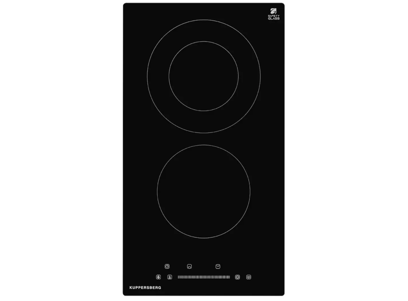 Kuppersberg ECS 321 ჩასაშენებელი ზედაპირი წარმოადგენს მინის კერამიკის კომპაქტურ და ელეგანტურ გადაწყვეტას თანამედროვე სამზარეულოსთვის. მოწყობილობა აღჭურვილია ორი ელექტრო კონფორით, რაც იდეალურია მცირე სივრცეებისთვის, აგარაკისთვის ან დამატებითი სამზარეულო ზონისთვის. მძლავრი გათბობის ელემენტები უზრუნველყოფს სწრაფ და თანაბარ გათბობას. შავი მინის ზედაპირი ადვილად იწმინდება და მდგრადია ნაკაწრებისა და მაღალი ტემპერატურის მიმართ. სენსორული პანელი მარტივი და ინტუიციური სამართავია, ხოლო ტაიმერი და ბავშვზე დაცვის ფუნქცია ზრდის უსაფრთხოებას. ECS 321 აერთიანებს სტილს, სანდოობასა და ეკონომიურობას ერთ კომპაქტურ მოწყობილობაში.