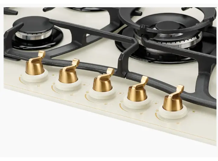 Kuppersberg FG 703 C Bronze გაზქურის ზედაპირი აერთიანებს დახვეწილ კლასიკურ დიზაინს და თანამედროვე ფუნქციონალურობას. მოწყობილობა აღჭურვილია 3 გაზის ქურით, რაც ოპტიმალურია ყოველდღიური კულინარიული საქმიანობისთვის. ბრინჯაოსფერი კონტროლერები და დეკორატიული დეტალები ქმნის განსაკუთრებულ ვიზუალურ სტილს, რომელიც ადვილად ერწყმის როგორც რეტრო, ისე თანამედროვე სამზარეულოს. მაღალი ხარისხის ემალის ზედაპირი უზრუნველყოფს გამძლეობას, მარტივ წმენდას და სიცხისადმი მედეგობას. სისტემაში ინტეგრირებულია ავტომატური ანთება და გაზის გაჟონვისგან დაცვის მექანიზმი, რაც ზრდის უსაფრთხოებას. კომპაქტური და ამავდროულად ეფექტური – იდეალურია მათთვის, ვინც აფასებს სტილსა და სანდოობას.