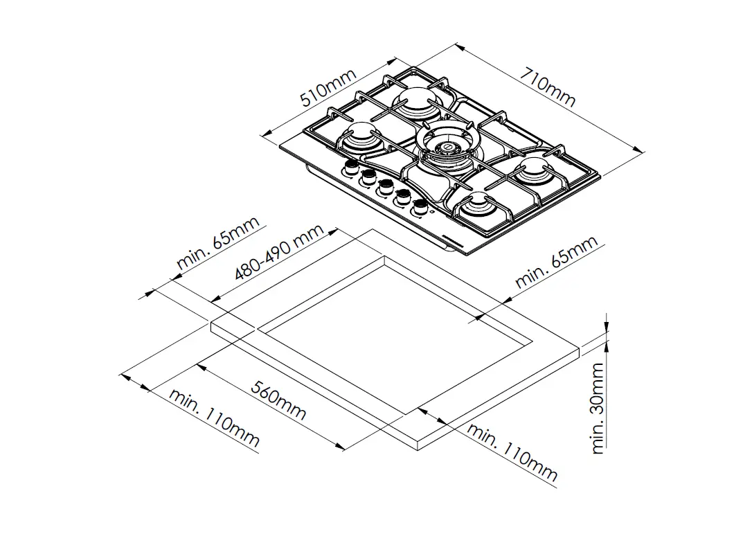 - ჩასაშენებელი ზომები: 560х490 მმ.