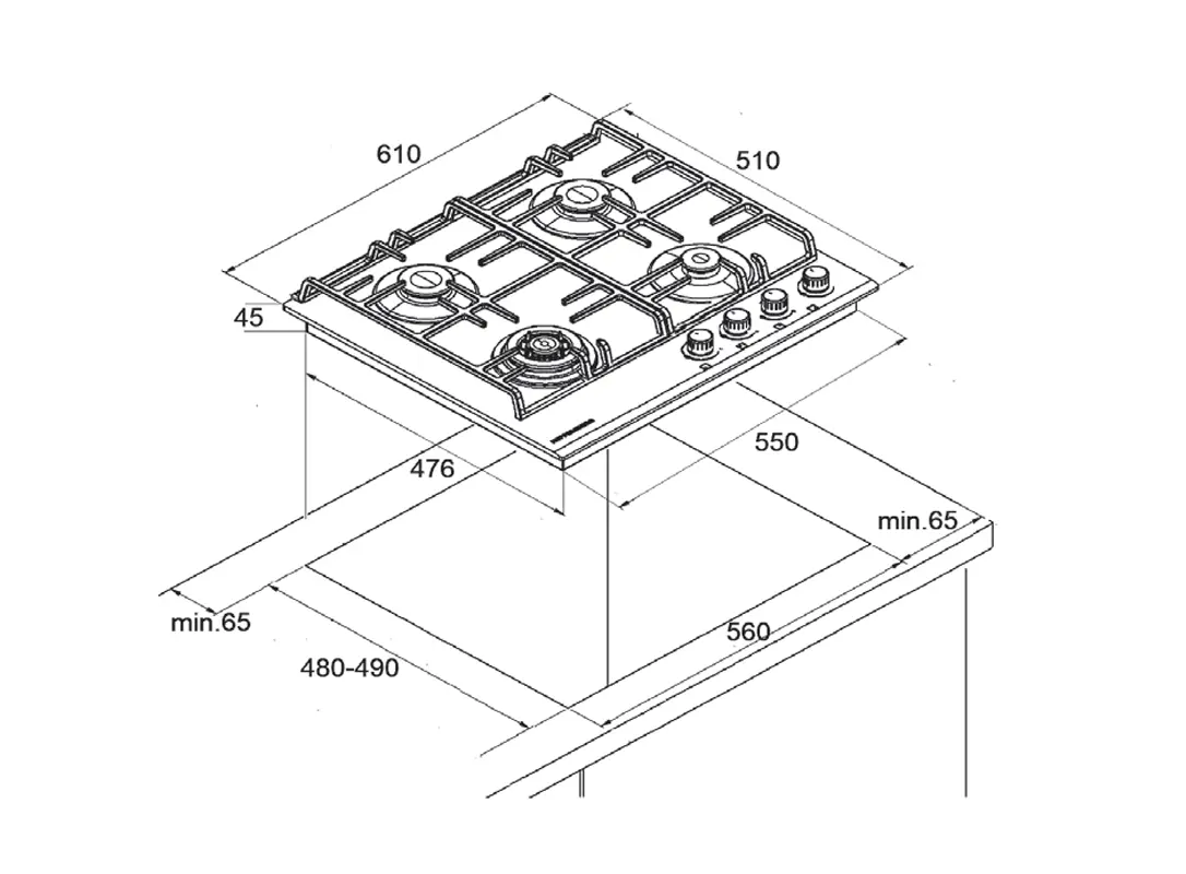 - ჩასაშენებელი ზომები: 560х490