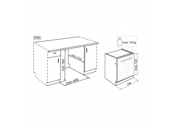 • ჭურჭლის სარეცხის ზომები: 820-900х595х550 მმ.