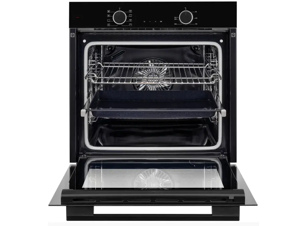 ჩასაშენებელი ღუმელი Kuppersberg HF 608 B იდეალურად აერთიანებს თანამედროვე ტექნოლოგიას, დახვეწილ დიზაინსა და მაღალ ფუნქციონალურობას. მოწყობილობას აქვს 56 ლიტრიანი ტევადობა და მრავალფუნქციური ცხობის 9 რეჟიმი, რაც შესაძლებელს ხდის სხვადასხვა ტიპის კერძის თანაბრად და ეფექტურად მომზადებას. შავი მინას და უჟანგავი ფოლადის დეტალებს სოლიდური და ელეგანტური იერი აქვს. ღუმელი აღჭურვილია მექანიკური ტაიმერით, LED განათებით და ორმაგი მინის კარით, რაც უზრუნველყოფს როგორც მარტივ გამოყენებას, ისე უსაფრთხოებას. ენერგოეფექტურობის A კლასი კი დაზოგავს ელექტროენერგიას და გრძელვადიან ეკონომიას უზრუნველყოფს. იდეალურია თანამედროვე სტილის სამზარეულოსთვის.