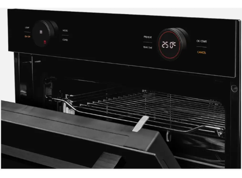 ელექტრო ღუმელი Kuppersberg KMW 612 BLACK არის მულტიფუნქციური მოწყობილობა, რომელიც აერთიანებს მიკროტალღურ ღუმელსა და გრილის ფუნქციას. 25 ლიტრიანი მოცულობით და 900 ვტ სიმძლავრით, ის იდეალურია ყოველდღიური გამოყენებისთვის, იქნება ეს გათბობა, გალღობა თუ სწრაფი მომზადება. თანამედროვე შავი დიზაინი შუშისა და უჟანგავი ფოლადის კომბინაციით მარტივად ერწყმის ნებისმიერ ინტერიერს. მოწყობილობა აღჭურვილია სენსორული მართვით, ციფრული ეკრანით და სხვადასხვა პროგრამით, რაც უზრუნველყოფს მაქსიმალურ კომფორტს. კომპაქტური ზომა და კედელში ჩაშენების შესაძლებლობა ხდის მას შეუცვლელ ელემენტად თანამედროვე სამზარეულოში.
