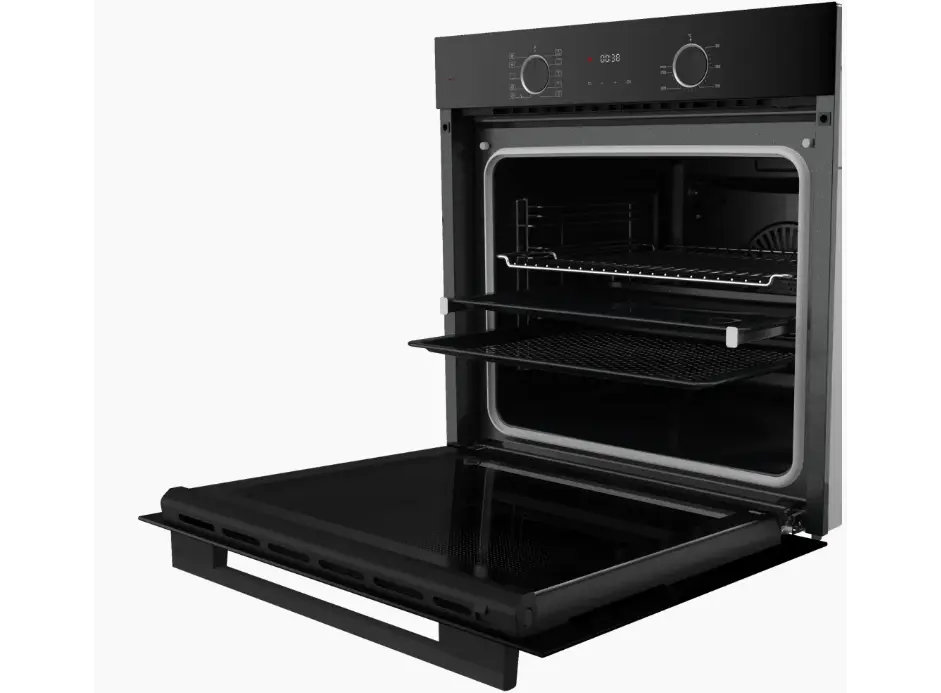 ჩასაშენებელი ღუმელი Kuppersberg KSO 610 B აერთიანებს თანამედროვე ტექნოლოგიებს, სტილსა და გამძლეობას. მოწყობილობა გამოირჩევა ენერგოეფექტური A კლასი შესრულებით და 65 ლიტრიანი ტევადობით, რაც იდეალურია ყოველდღიური და მრავალფეროვანი მომზადებისთვის. ღუმელი აღჭურვილია 9 სამუშაო რეჟიმით, მათ შორის გრილითა და კონვექციით, რაც ხელს უწყობს თანაბარ გამოცხობას. მინის კარი ორმაგი შუშით უსაფრთხოებას უზრუნველყოფს, ხოლო მექანიკური ტაიმერი და ჩამრთველი ღილაკები მარტივ მართვას იძლევა. შავი მინიმალისტური დიზაინი და უჟანგავი ფოლადის ელემენტები აერთიანებს ელეგანტურ იერსა და ფუნქციონალურობას თანამედროვე სამზარეულოში.