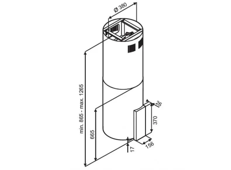 • გამწოვი მილის ზომები: 120-150 მმ.