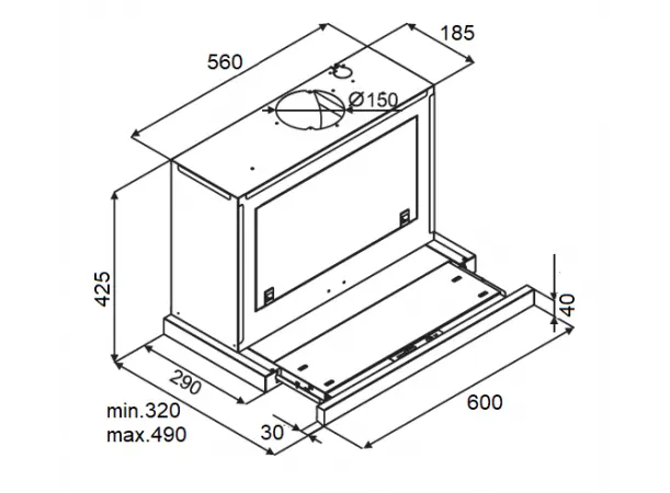 • გამწოვის ზომები: 425х600х320-490 მმ.