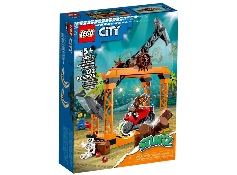 LEGO City Stuntz The Shark Attack Stunt Challenge არის დინამიკური და მხიარული სათამაშო კონსტრუქტორი, რომელიც აერთიანებს სანახაობრივ შოუს, აკრობატიკას და ზღვის მონსტრების თემატიკას. ნაკრები მოიცავს შარკის ფორმის დაბრკოლებას, რკალის ტრასას, მოტოციკლს და ორი მინი ფიგურას – მოტო აკრობატსა და სანაპიროს გმირს. მოყვარულები შეძლებენ დაატრიალონ მოტოციკლი pull-back მექანიზმით და გაუშვან ის ტრასაზე, რათა გადალახოს ზვიგენის საშიში ხაფანგი. ეს კონსტრუქტორი ხელს უწყობს ბავშვებში სისწრაფეზე რეაგირების, ფანტაზიისა და ისტორიების შექმნის უნარების განვითარებას. იდეალურია როგორც ინდივიდუალური თამაშისთვის, ასევე მეგობრებთან გასაზიარებლად.