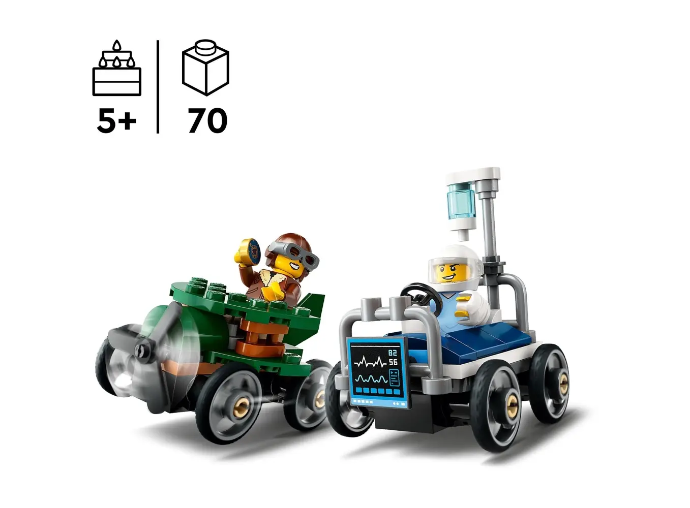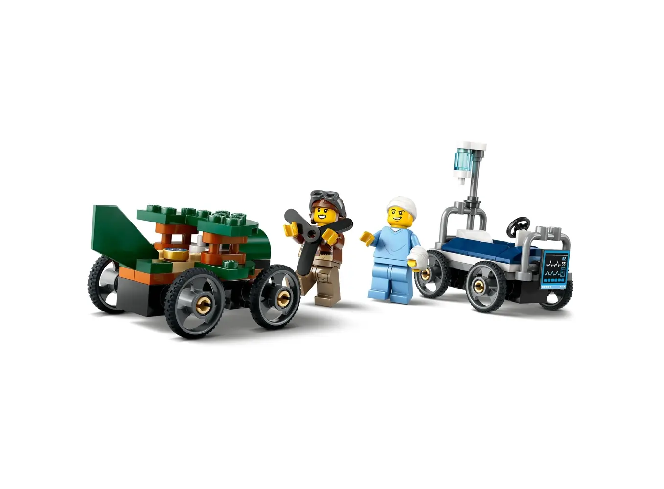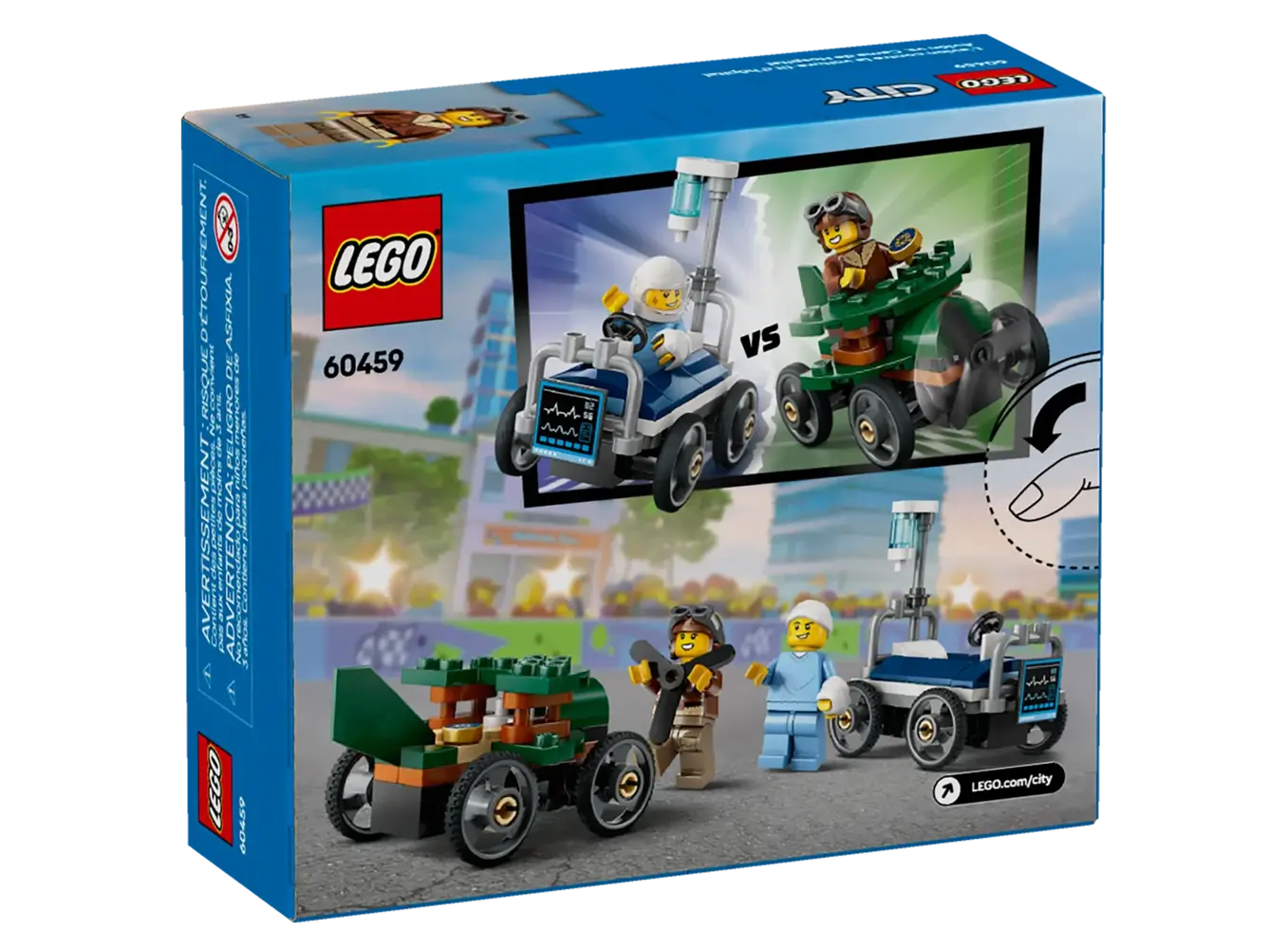 LEGO City Airplane vs. Hospital Bed არის უნიკალური და ინტერაქტიური კონსტრუქტორი, რომელიც აერთიანებს ავიაციისა და სამედიცინო დახმარების თემებს ერთ სცენარში. კომპლექტი მოიცავს სამგზავრო ტიპის თვითმფრინავს დეტალური კაბინით, საველე ჰოსპიტლის საწოლს აღჭურვილობით, აგრეთვე სხვადასხვა მინიფიგურას, მათ შორის პილოტს, ექიმს და პაციენტს. ბავშვებს შეუძლიათ გაითამაშონ სამაშველო ოპერაციები, გადაყვანა ავადმყოფის ჰოსპიტალში ან სხვა სიტუაციები, რაც ავითარებს კრეატიულობას, ემპათიასა და როლური თამაშის უნარებს. კომპლექტი შესანიშნავად ერგება სხვა LEGO City სერიებს და ქმნის რეალისტურ და საგანმანათლებლო სათამაშო გარემოს. რეკომენდებულია 5+ ასაკისთვის.