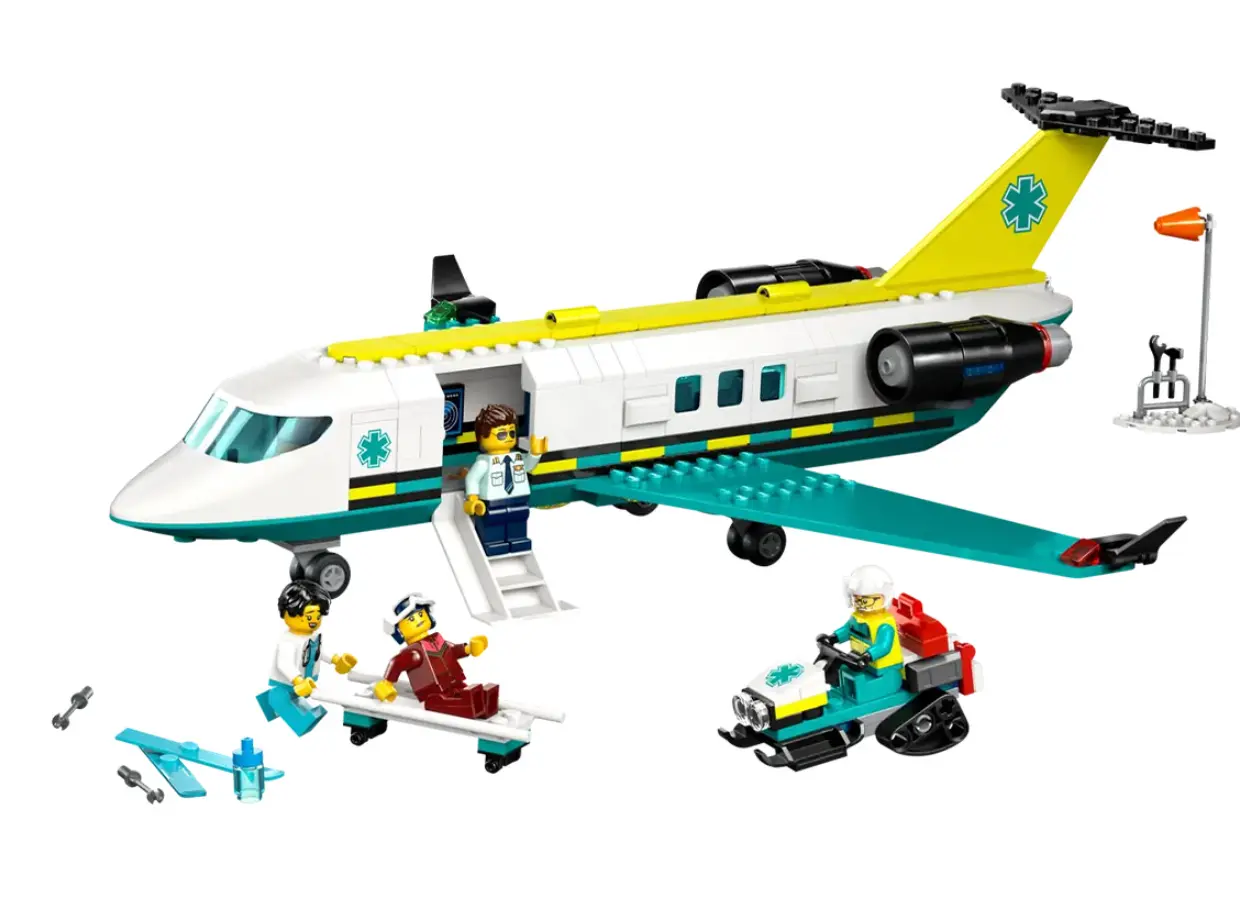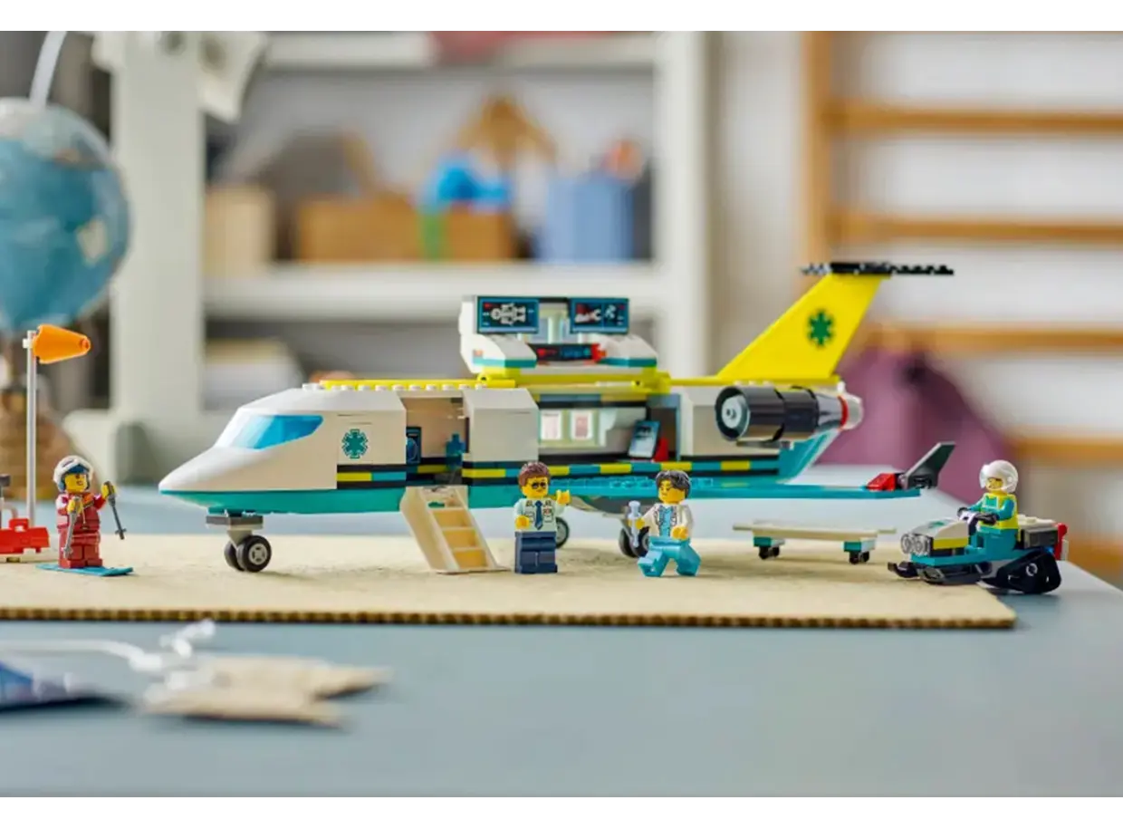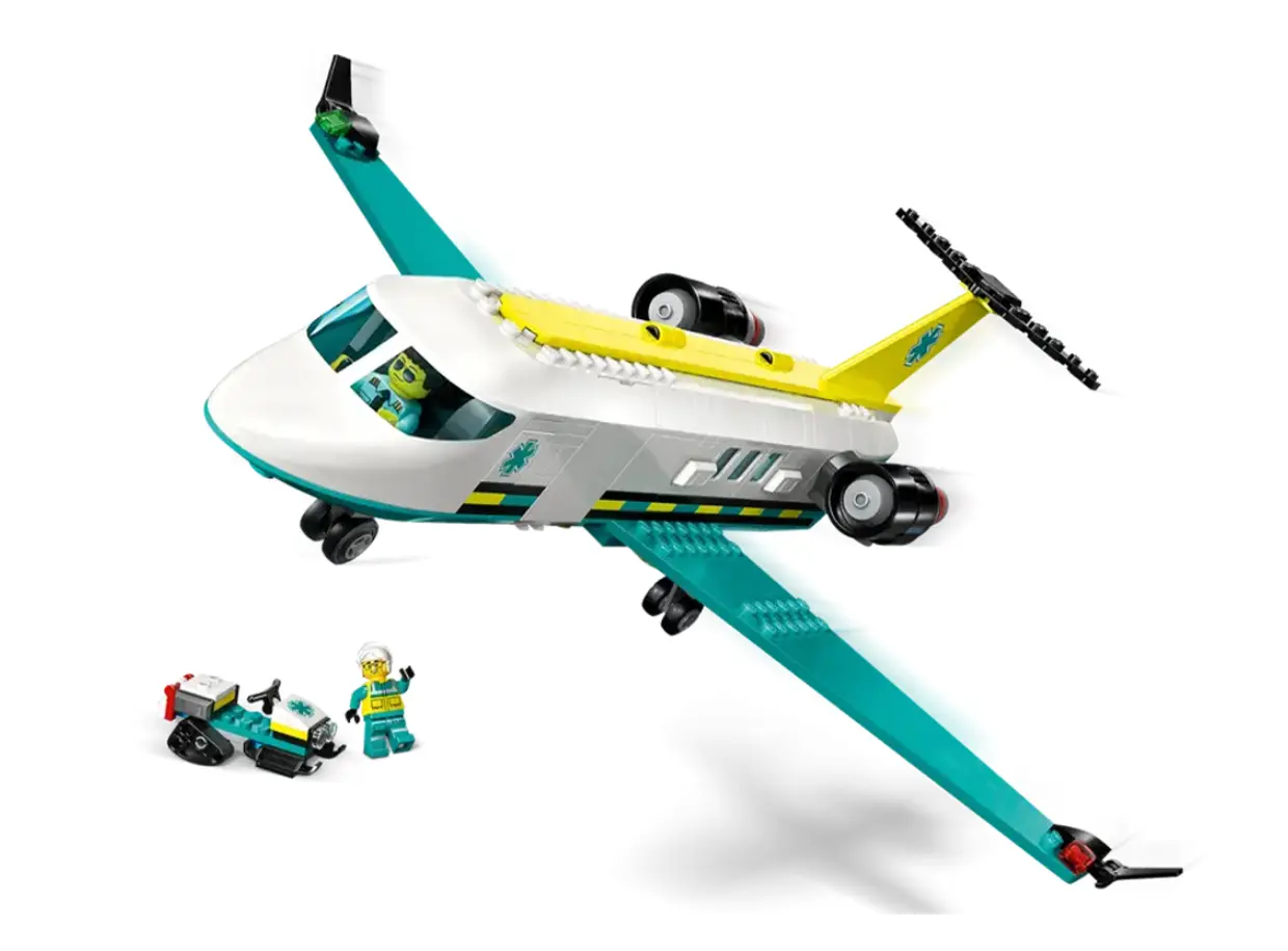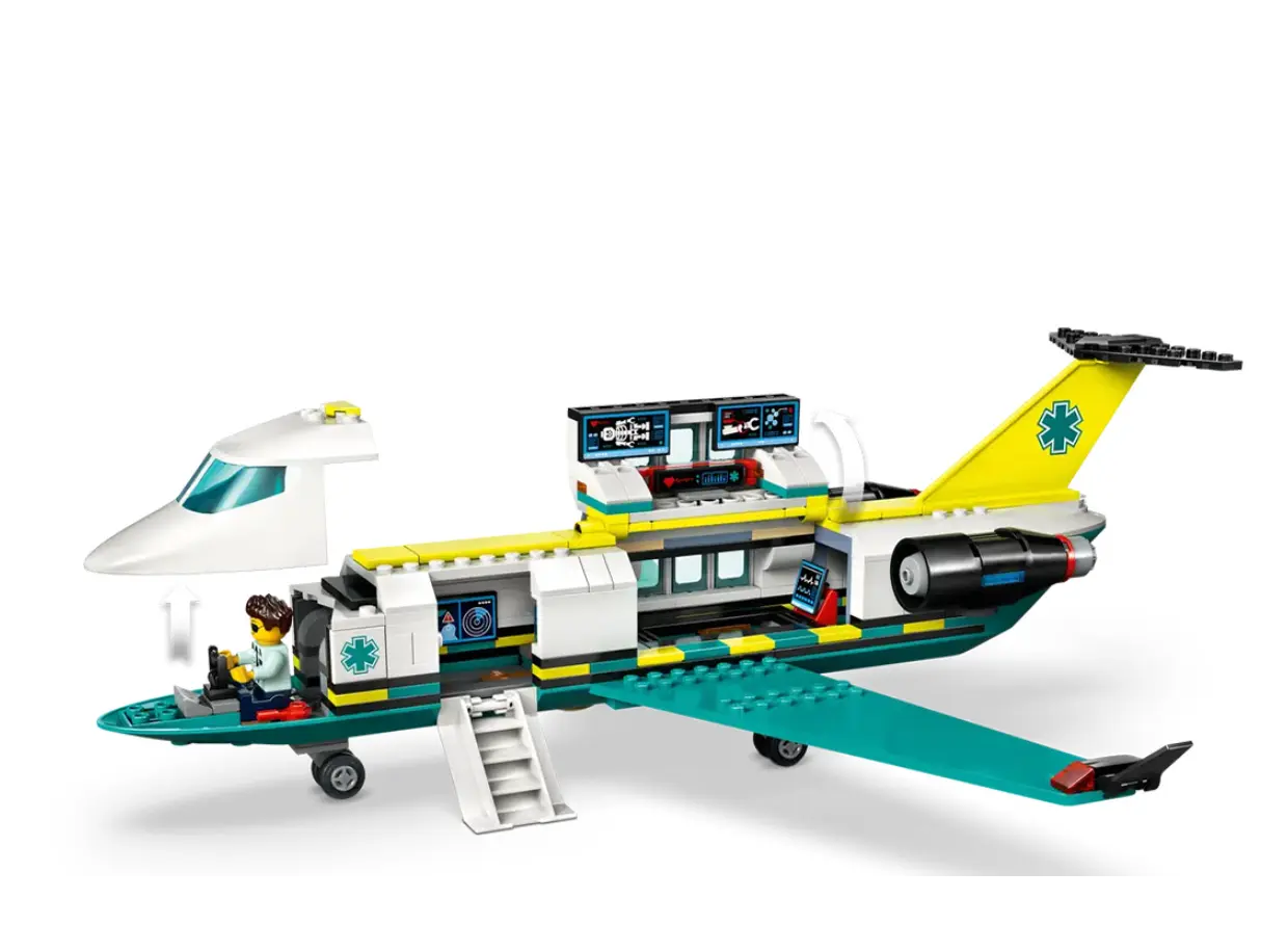 LEGO City Emergency Air Ambulance Airplane არის სათავგადასავლო საკონსტრუქტორო ნაკრები, რომელიც ბავშვებს საშუალებას აძლევს გახდნენ საჰაერო სამაშველო გუნდის წევრები. კომპლექტში შედის დეტალიზებული სამედიცინო თვითმფრინავი, რომელიც აღჭურვილია მძლავრი პროპელერებით, გახსნადი სათავსოთი საკაცისთვის და თანამედროვე სანავიგაციო სისტემით. ნაკრები მოიცავს მინიფიგურებს — პილოტს, ექიმსა და პაციენტს, ასევე მრავალფეროვან სამედიცინო აქსესუარებს, რაც თამაშის პროცესს მაქსიმალურად რეალისტურსა და საინტერესოს ხდის. მაღალი ხარისხის ლეგოს კუბიკები უზრუნველყოფს ხომალდის სიმყარეს, რაც იდეალურია დინამიკური სამაშველო ოპერაციების მოსაწყობად. ეს არის შესანიშნავი საჩუქარი ბავშვებისთვის, ვისაც იტაცებს ავიაცია და სურს სხვების დახმარება. მშენებლობის პროცესი ავითარებს ფანტაზიასა და მოტორიკას, ხოლო დასრულებული მოდელი ნებისმიერი ლეგო ქალაქის მნიშვნელოვანი ნაწილი გახდება. შეიძინეთ ახლავე და მოემზადეთ გადაუდებელი დახმარების აღმოსაჩენად ციდან!