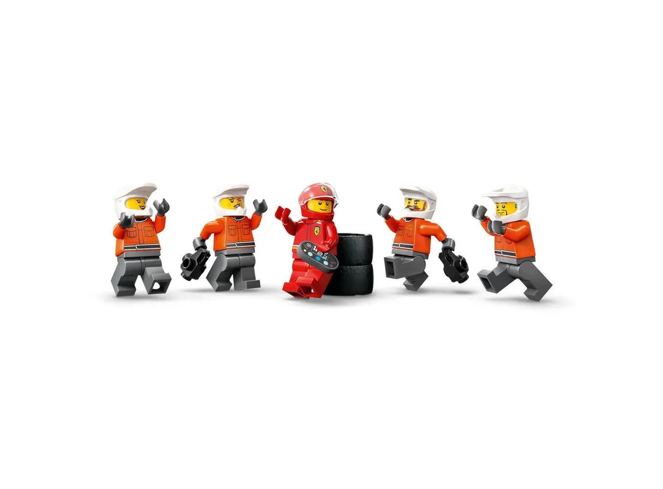 კომპლექტში შედის Ferrari-ს რბოლის მანქანა, პიტ-კრუუს ფიგურები და ტექნიკური აღჭურვილობა, რომელიც რეალისტურად ასახავს ფორმულა 1-ის რბოლების სამყაროს. აჩქარებული საბურავის გამოცვლა, საწვავის შევსება და სტრატეგიული მართვა – ყველაფერი ეს შეიძლება გახდეს შენი LEGO რბოლის ნაწილი!