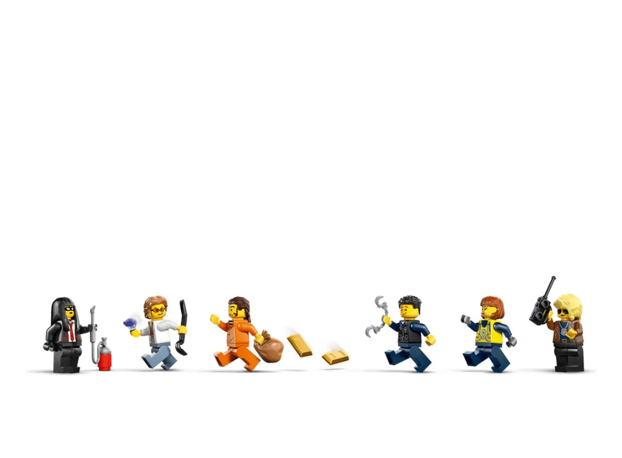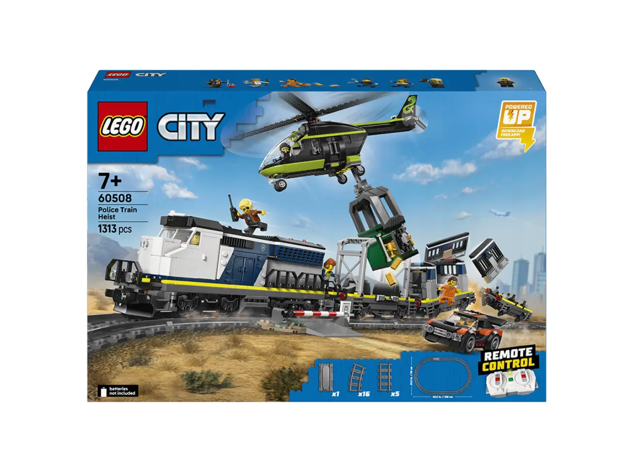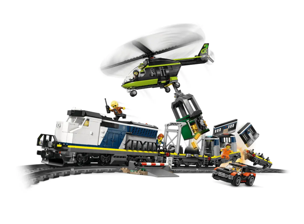LEGO City Police Train Heist არის ამაღელვებელი საკონსტრუქტორო ნაკრები, რომელიც ბავშვებს პოლიციური თავგადასავლების სამყაროში ეპატიჟება. მოქმედება ვითარდება სწრაფმავალ მატარებელზე, სადაც მძარცველები ძვირფასი ტვირთის ხელში ჩაგდებას ცდილობენ. კომპლექტში შედის დეტალიზებული მატარებელი, პოლიციის ვერტმფრენი და სწრაფი მოტოციკლი, რაც თამაშს მრავალფეროვანსა და დინამიკურს ხდის. მრავალრიცხოვანი მინიფიგურები და აქსესუარები საშუალებას აძლევს პატარა მშენებლებს შექმნან უამრავი სცენარი და განავითარონ კრიმინალთან ბრძოლის საკუთარი გეგმა. მაღალი ხარისხის კუბიკები უზრუნველყოფს კონსტრუქციის სიმყარეს, ხოლო მარტივი ინსტრუქცია მშენებლობის პროცესს სასიამოვნოს ხდის. ეს არის საუკეთესო საჩუქარი ბავშვებისთვის, ვისაც იტაცებს მძაფრსიუჟეტიანი ისტორიები და ქალაქის უსაფრთხოებაზე ზრუნვა. შეიძინეთ ახლავე და მოაწყვეთ დაუვიწყარი დევნა რელსებზე.