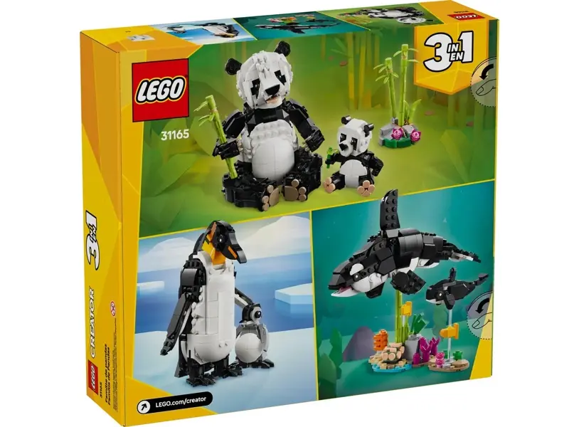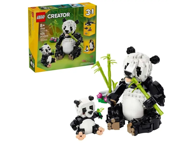 აღმოაჩინე ველური ბუნების საოცარი სამყარო LEGO Creator Wild Animals Panda Family-ით! ეს 3-ინ-1 კონსტრუქტორი გაძლევს შესაძლებლობას ააშენო პანდების მხიარული ოჯახი, რომელიც შედგება დიდი პანდას, პატარა ბოკვრისა და მორიგი თამაშობადი სცენარისგან.